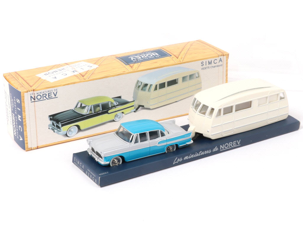 NOREV (FRANCE) CL5712 SIMCA VEDETTE CHAMBORD avec caravane HENON gris, bleu & blanc