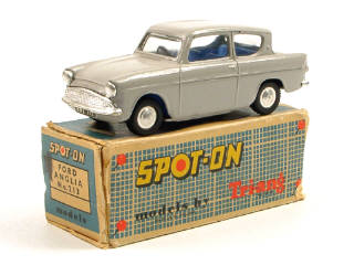 SPOT-ON (GB) 213 FORD ANGLIA gris clair, intérieur bleu ciel