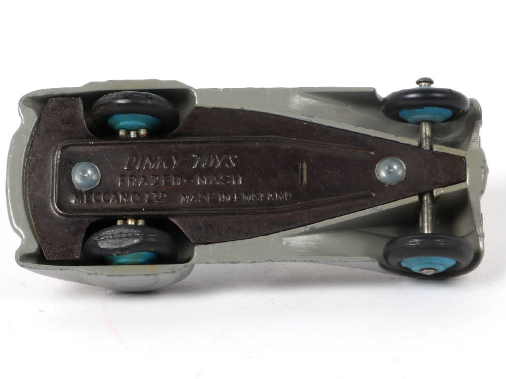 DINKY TOYS (GB) 38A FRAZER NASH BMW gris, intérieur bleu & jantes bleu vif