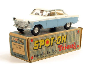 SPOT-ON (GB) 100SL FORD ZODIAC avec phares électriques & conducteur blanc, flancs bleu pâle, intérieur crème