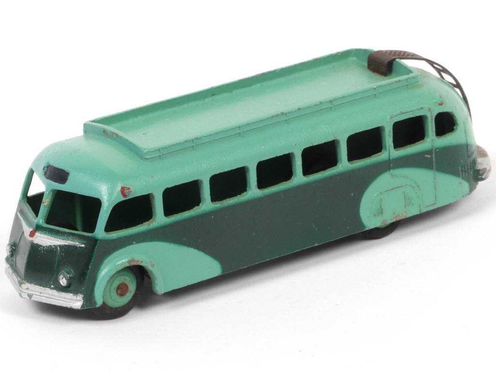 DINKY TOYS (FRANCE) 29E Autocar ISOBLOC (version avec galerie lisse & ailes au pochoir) 2 tons de vert