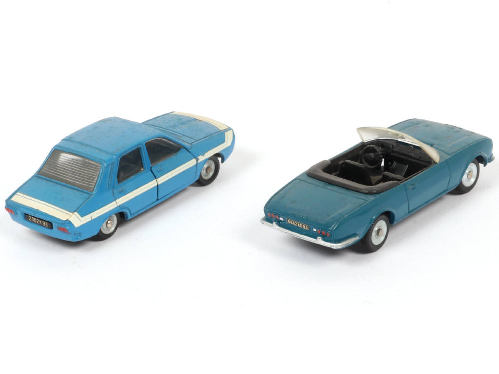 comprend : PEUGOT 504 cabriolet (état 'A-') & RENAULT 12 GORDINI (état 'B', quelques manques sur les décalques) - carrosseries encrassées avec certaines jantes ternies