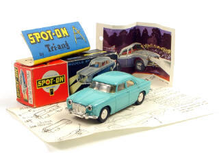 avec petite fiche illustrée détaillant les caractéristiques techniques de la voiture, bulletin d'inscription au club SPOT-ON & notice d'instructions pour le système d'éclairage - manque décalque de plaque minéralogique avant - with SPOT-ON membership form & small illustrated poster detailing the technical characteristics of the car & instruction sheet for the lighting system - front number plate transfer missing - SCARCE COLOUR!