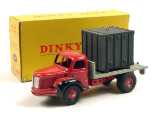 DINKY TOYS (FRANCE) 34B BERLIET Plateau avec container (version avec goupille) rouge, plateau gris clair