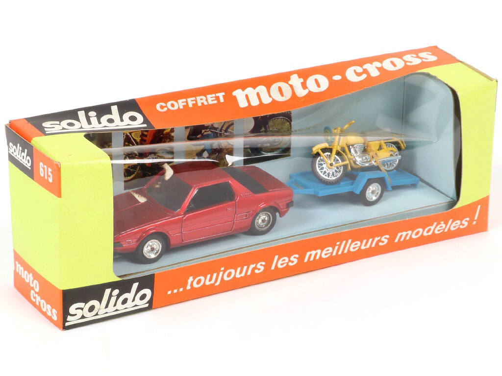 SOLIDO (FRANCE) 615 Coffret 'MOTO CROSS' rouge métal, bleu & jaune