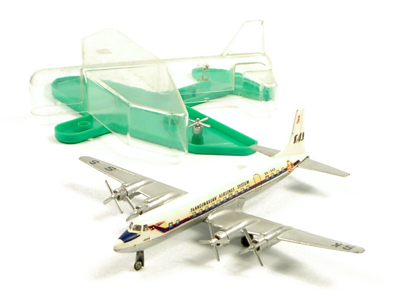 échelle 1/200e - version avec décalques 'SCANDINAVIAN AIRLINES SYSTEM' sur les côtés du fuselage - avec moteur à hélice de rechange - manque une roue de train d'atterrissage