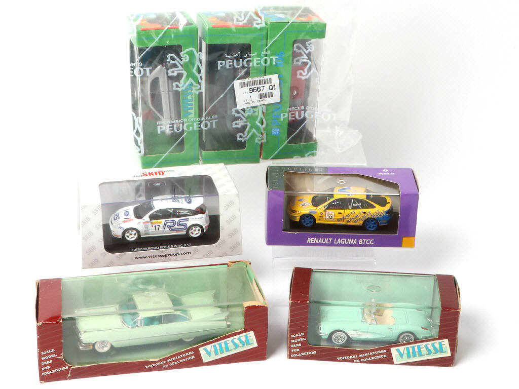 comprend notamment les modèles : sachet de 3 PEUGEOT 106 de couleurs différentes, RENAULT LAGUNA BTCC & FORD FOCUS WRC (2001) - boîtes en états 'a' à 'd'