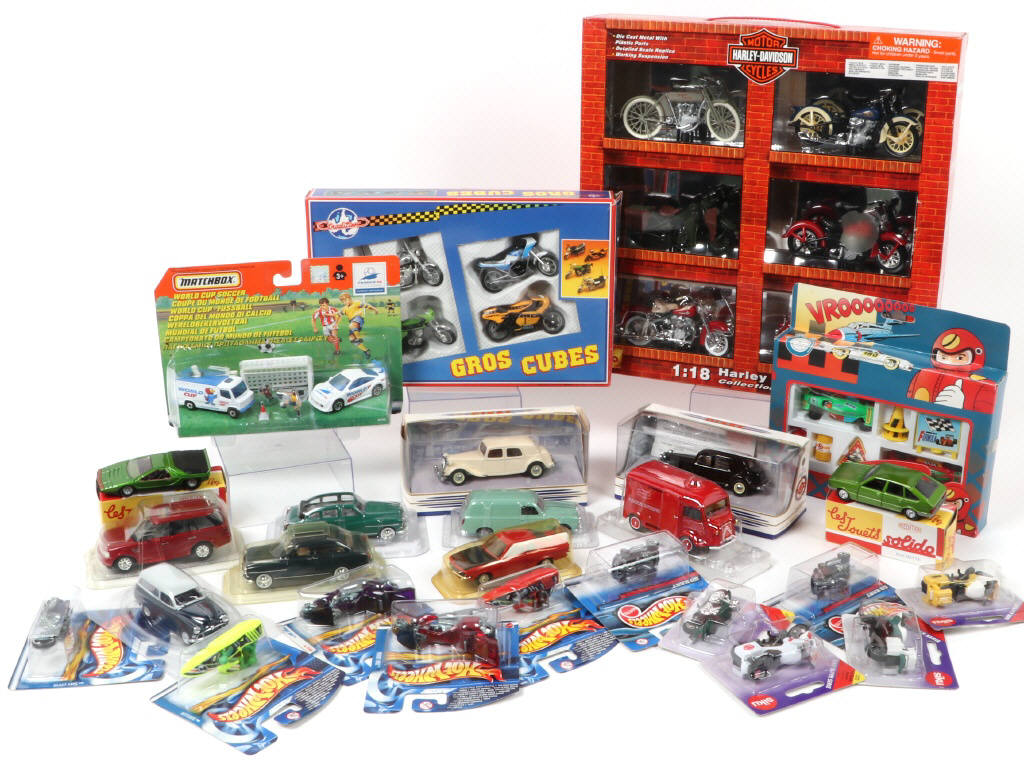 comprend notamment les marques : SOLIDO, SIKU, MATCHBOX, DINKY & HOT WHEELS - boîtes en états 'a' à 'b'