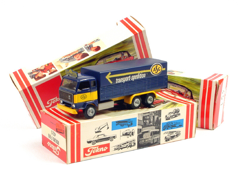 TEKNO (DANEMARK) 425 VOLVO FB89 Bâché 'TRANSPORT SPEDITION' bleu marine & jaune