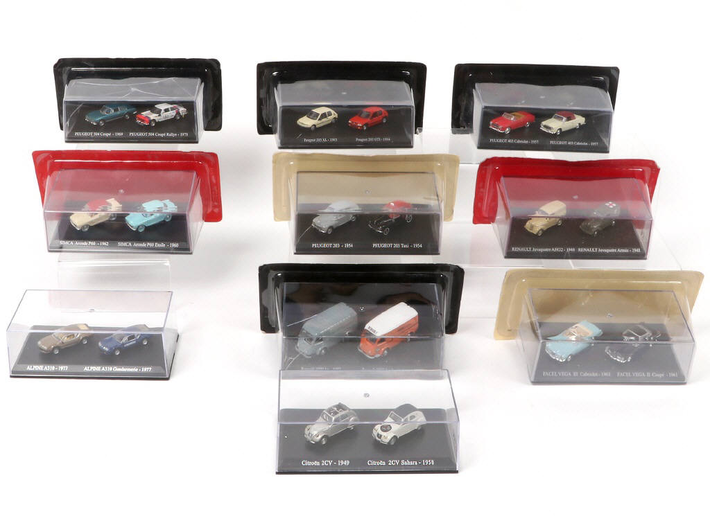 échelle HO - comprend notamment les modèles : PEUGEOT 203 (1954), FACEL VEGA III (1963) & RENAULT 1000 Kg (1953) - boîtes en états 'a' à 'd'