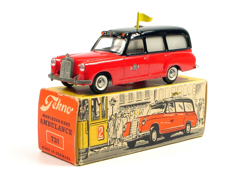 TEKNO (DANEMARK) 731 MERCEDES 220 S Ambulance 1957 rouge & noir