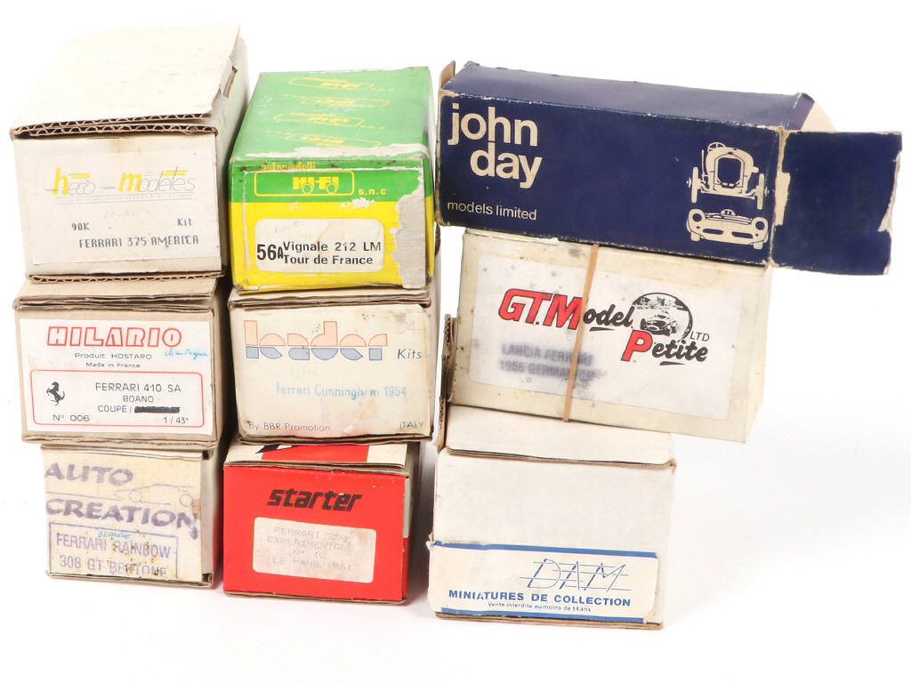 kits à monter - semblent complets - comprend notamment les marques : GT MODEL, HILARIO, LEADER & STRATER - boîtes en états 'b' à 'd'