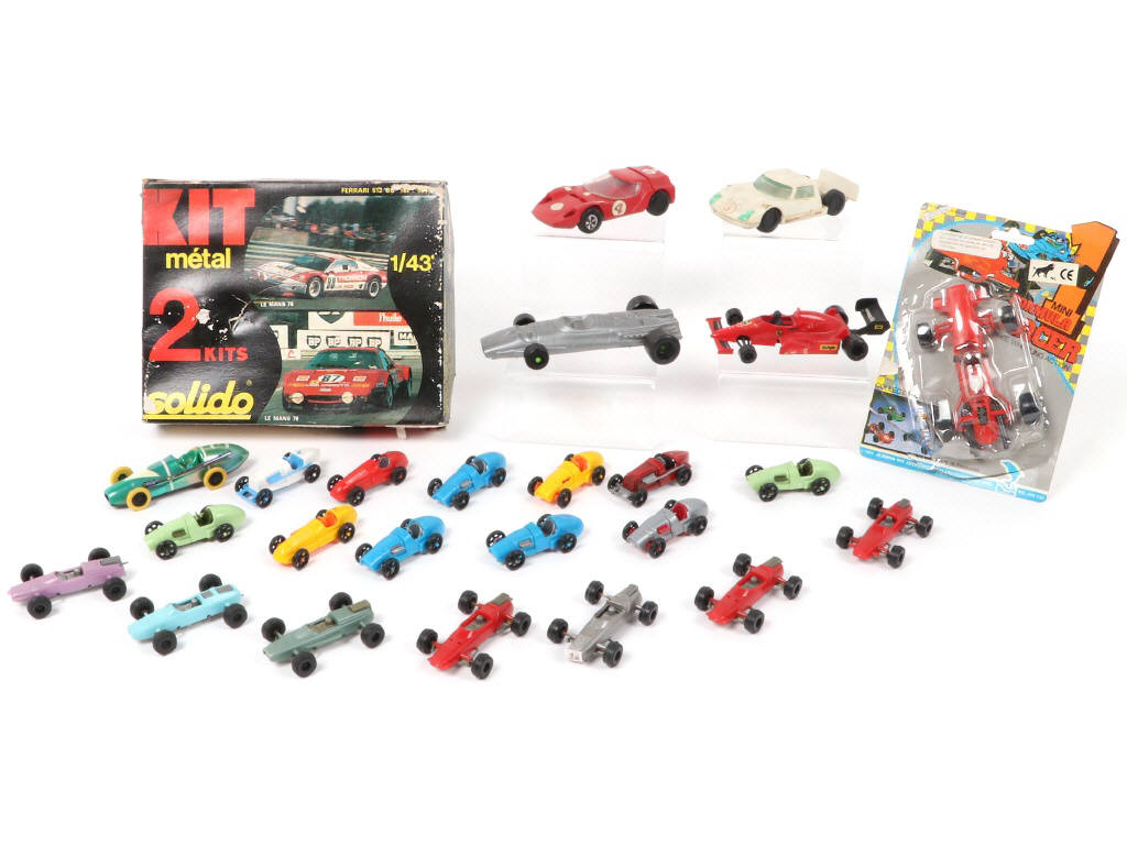 différentes échelles - comprend notamment les marques : SOLIDO (kits à monter 'semblent complets') & ECURIE ROUSTANG - possibilité de petits manques & parties cassées