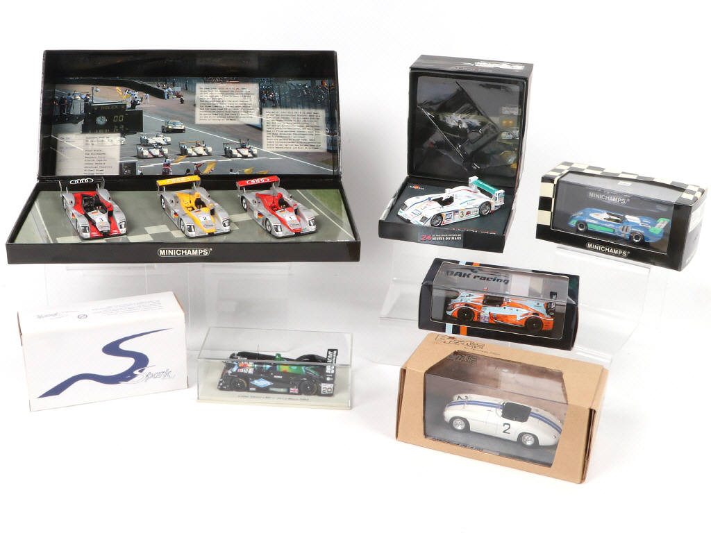 comprend les marques : SPARK, MINICHAMPS & ALTAYA - on y retrouve notamment les modèles : LISTER STORM LMP N°20 'LE MANS 2003' de la marque 'SPARK', le coffret 'INFINEON AUDI R8 'Le Mans 2002' de la marque 'MINICHAMPS' & coffret 'VAINQUEUR DES 24 HEURES DU MANS 2005 AUDI R8' de la marque 'ALTAYA'