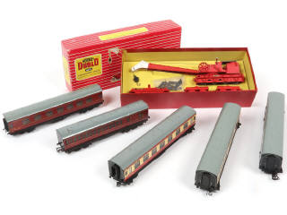 non testé - série DUBLO - avec sachet de stabilisateurs - on y joint 5 voitures de voyageurs de la marque en états 'C à D' (quelques traces d'oxydation)