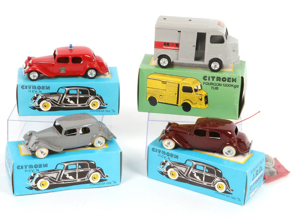 rééditions de 1985 - comprend les modèles : CITROËN 11 CV 'Réf : 402, 403 & 405' & CITROËN FOURGON 1200 Kg TUB (avec antenne, cameraman, caméra & socle)