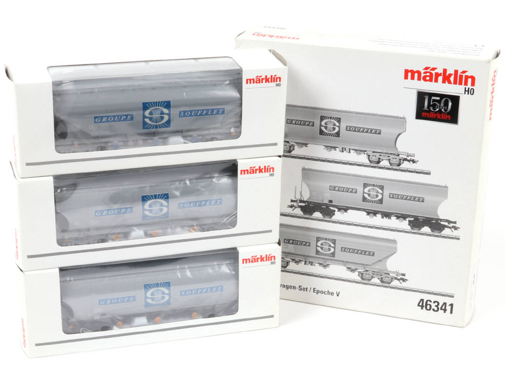 MÄRKLIN 'HO' (ALLEMAGNE) 46341 Coffret de 3 wagons de marchandises 150 ème anniversaire gris & bleu