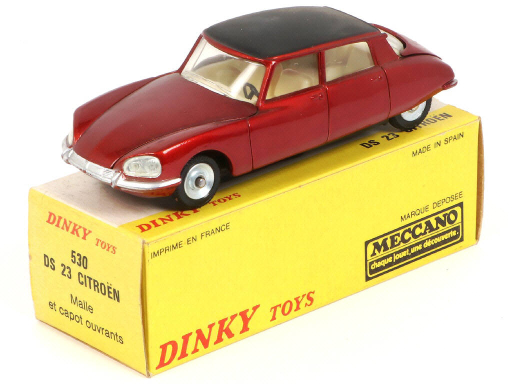 DINKY TOYS (FRANCE) 530 CITROËN DS 23 (made in SPAIN) bordeaux métal, toit noir mat
