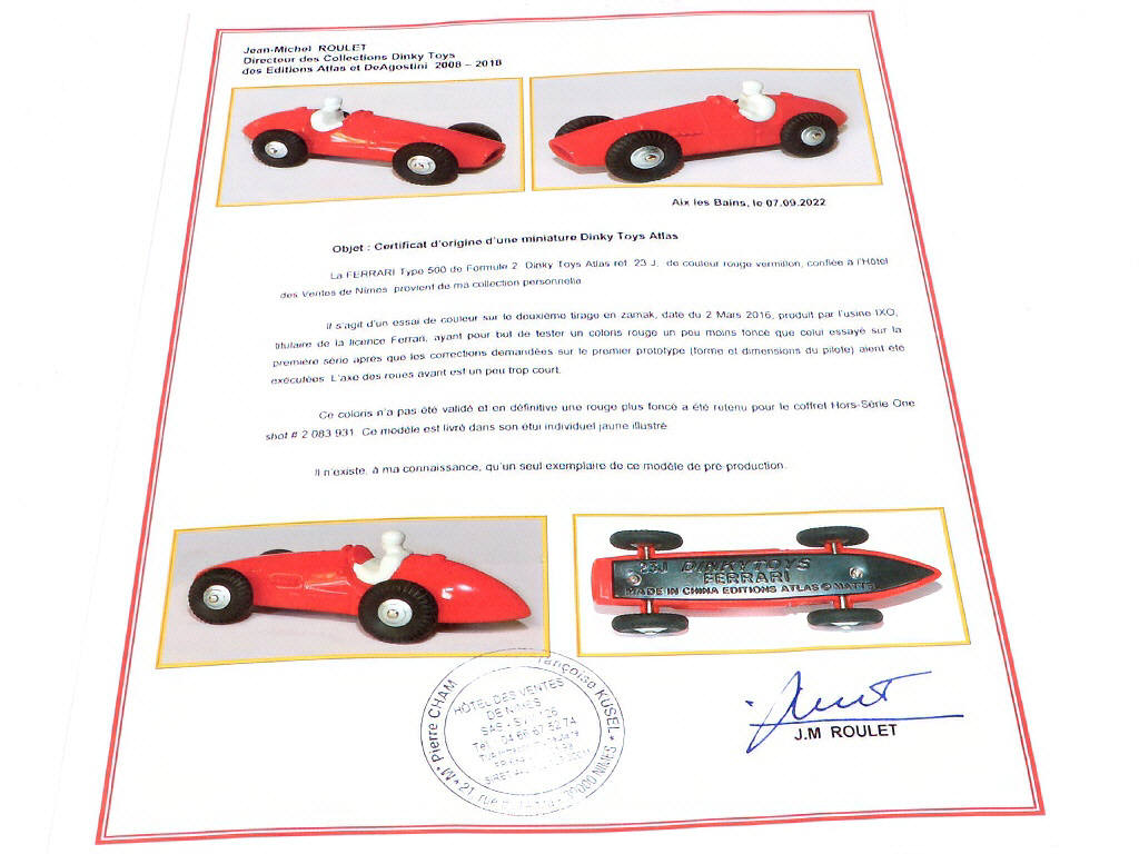 il s'agit d'un essai de couleur sur le deuxième tirage en zamak - on y joint le certificat signé par JEAN MICHEL ROULET qui retrace l'historique de ce modèle d'exception - RARISSIME !
