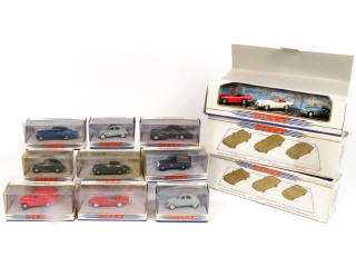 comprend notamment : 3 coffrets (voitures identiques : TRIUMPH TR4A-IRS, JAGUAR TYPE E & AUSTIN-HEALEY) - boîtes en état 'a' à 'c' légèrement poussiéreuses