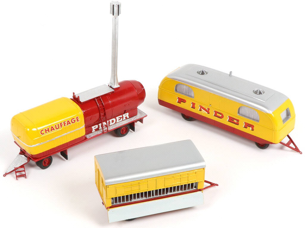 MINICIRQUE (FRANCE) Ensemble de 3 remorques bordeaux, jaune & gris métal