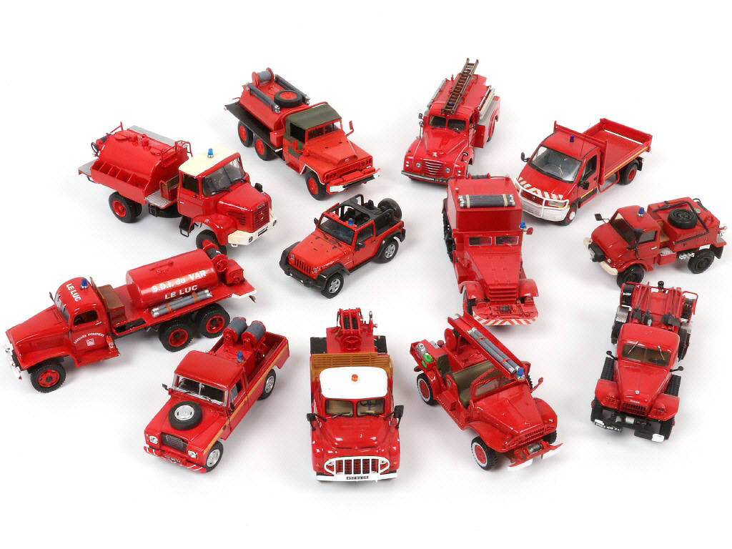 DIVERS Ensemble de 12 véhicules de pompiers rouge