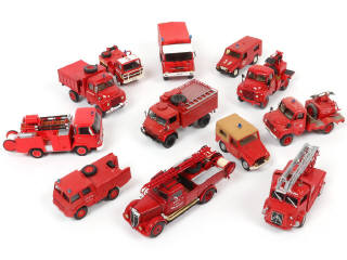DIVERS Ensemble de 12 véhicules de pompiers rouge