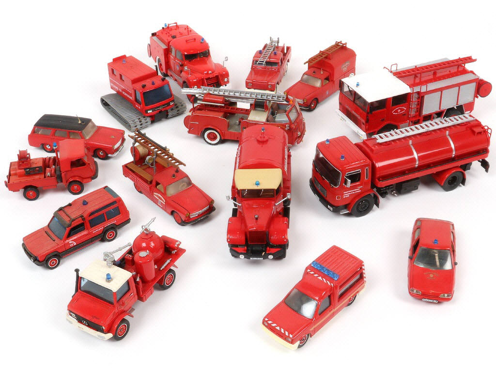 DIVERS Ensemble de 15 véhicules de pompiers rouge