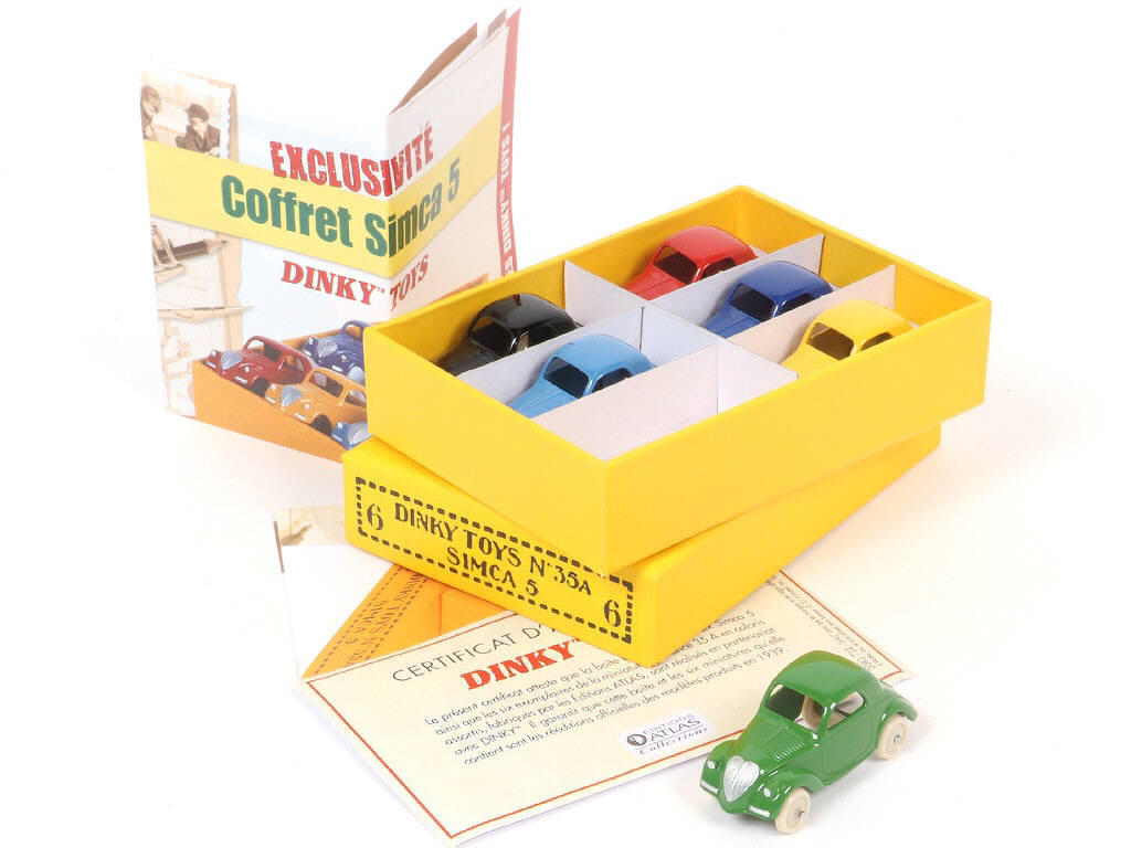 réédition DINKY TOYS FRANCE - contient : 6 SIMCA 5 avec séparations intérieures, certificat d'authenticité & documentation