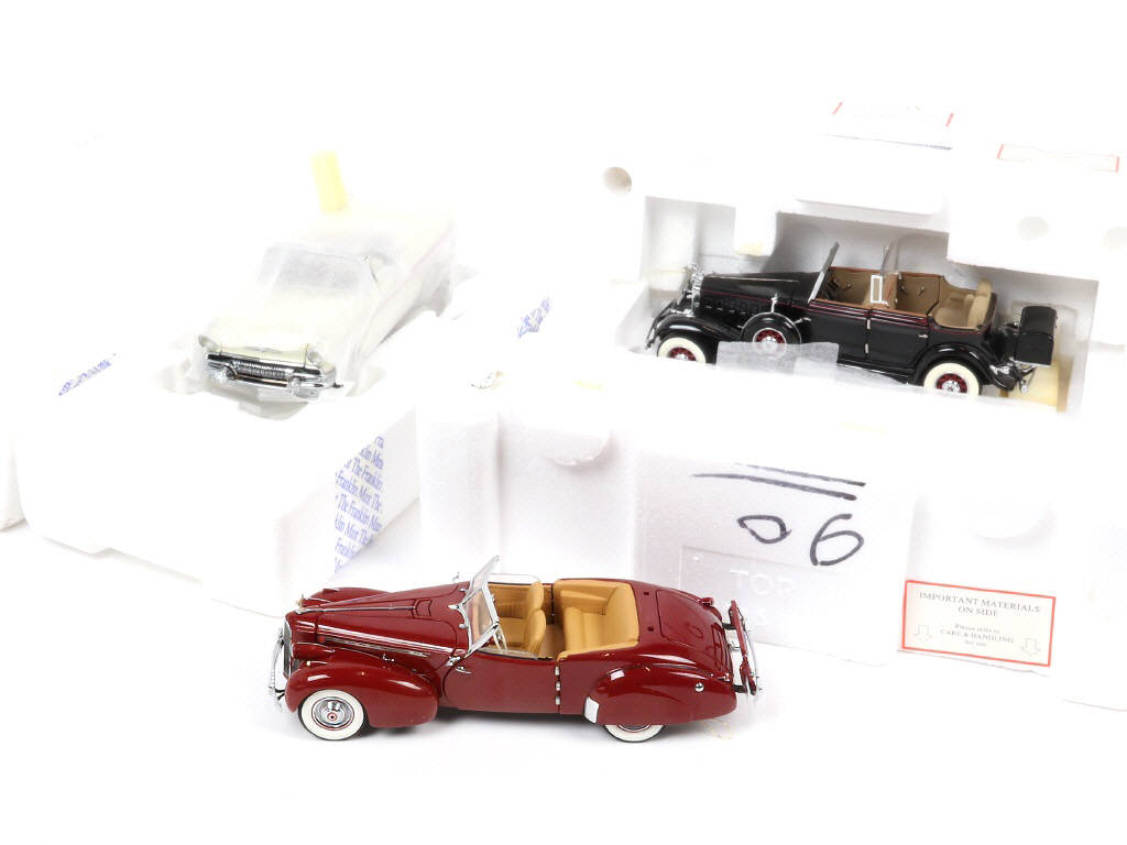 échelle : 1/24ème - comprend : PACKARD 1940, CADILLAC V16 (état 'A', manque un rétroviseur) & PONTIAC BONNEVILLE 1957 - avec certains accessoires & suremballages