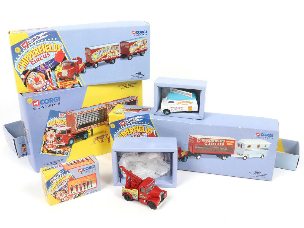 CORGI TOYS (GB) Ensemble de 5 véhicules 'CHIPPERFIELD'S' & une boîte de figurines