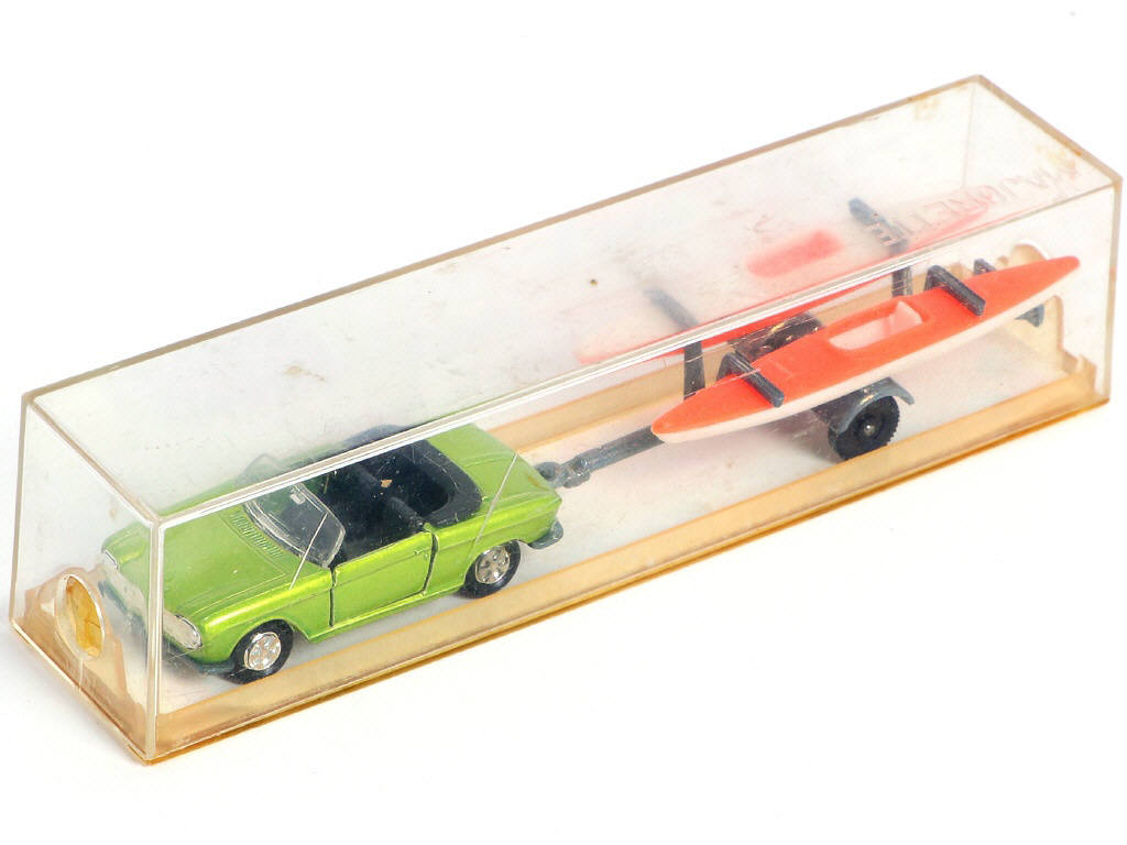 échelle : 1/65ème - contient : PEUGEOT 204 Cabriolet & 2 canoës sur remorque