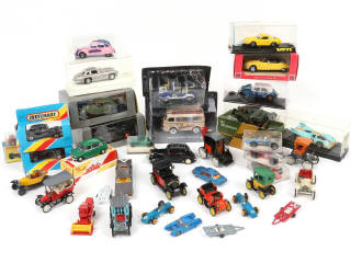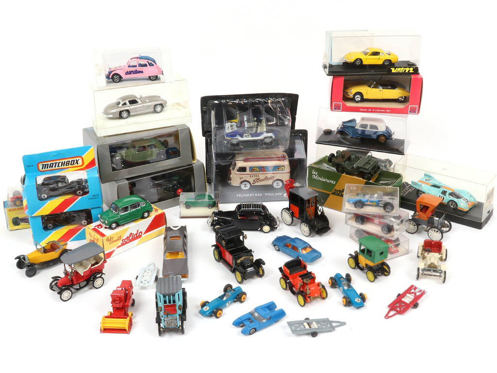 on y retrouve notamment les marques : SOLIDO, JMK & MATCHBOX - quelques manques & parties cassées sur certains exemplaires - les boîtes présentées sont en état 'a' à 'c'