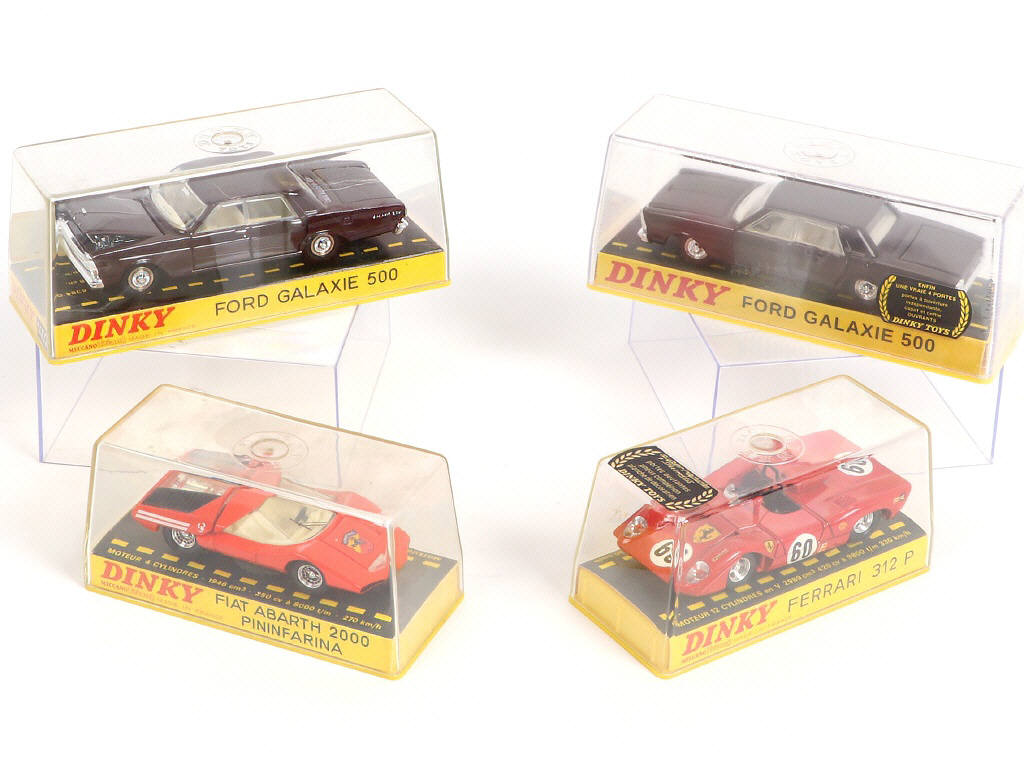détails ajoutés sur les carrosseries - on y joint un modèle en réédition 'ATLAS' (FORD GALAXIE 50, état 'A+') - boîtes en état 'a' à 'b'