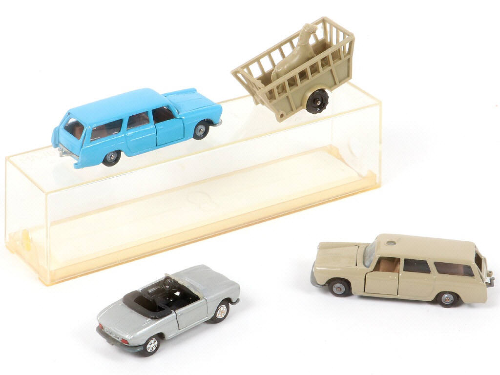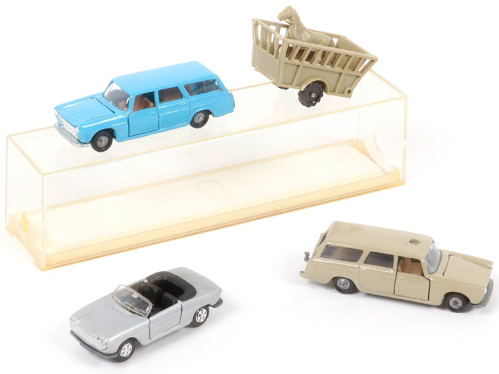 MAJORETTE (FRANCE) Ensemble de 3 PEUGEOT & une bétaillère