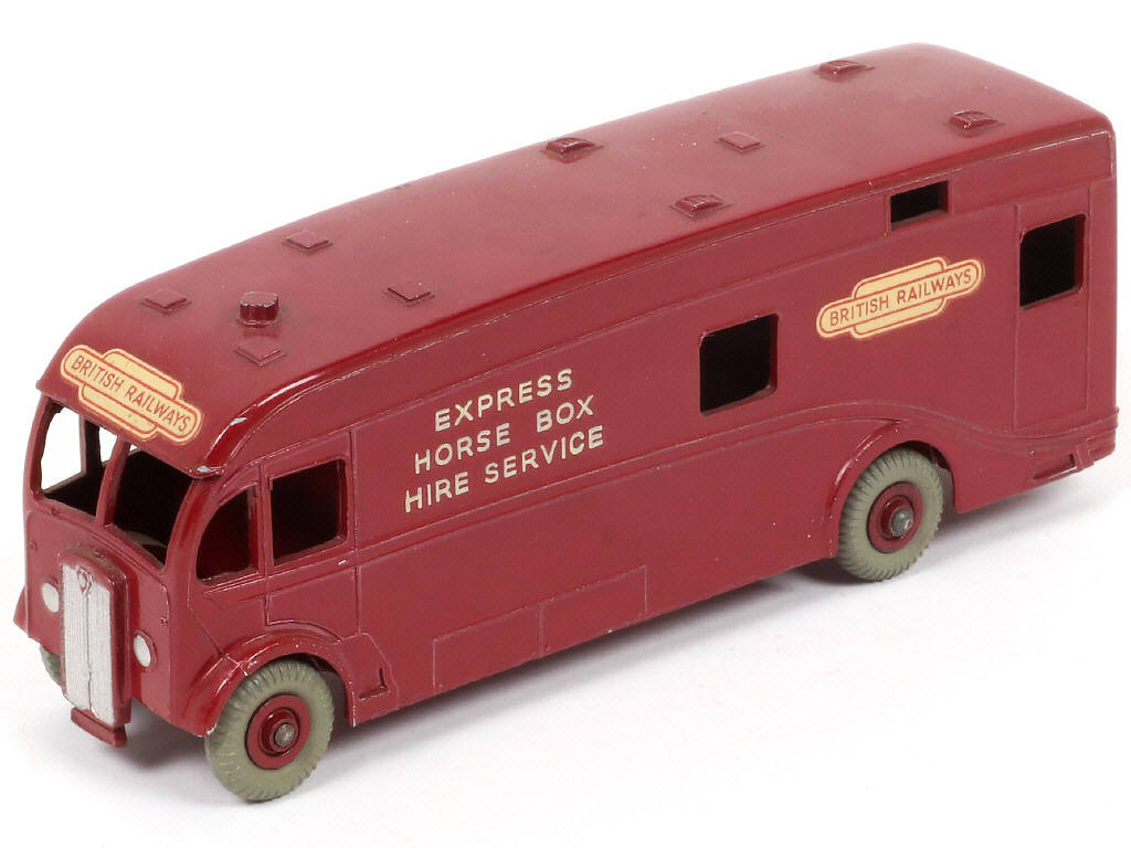 DINKY TOYS (GB) 581 HORSE BOX Transport de chevaux 'BRITISH RAILWAYS' bordeaux