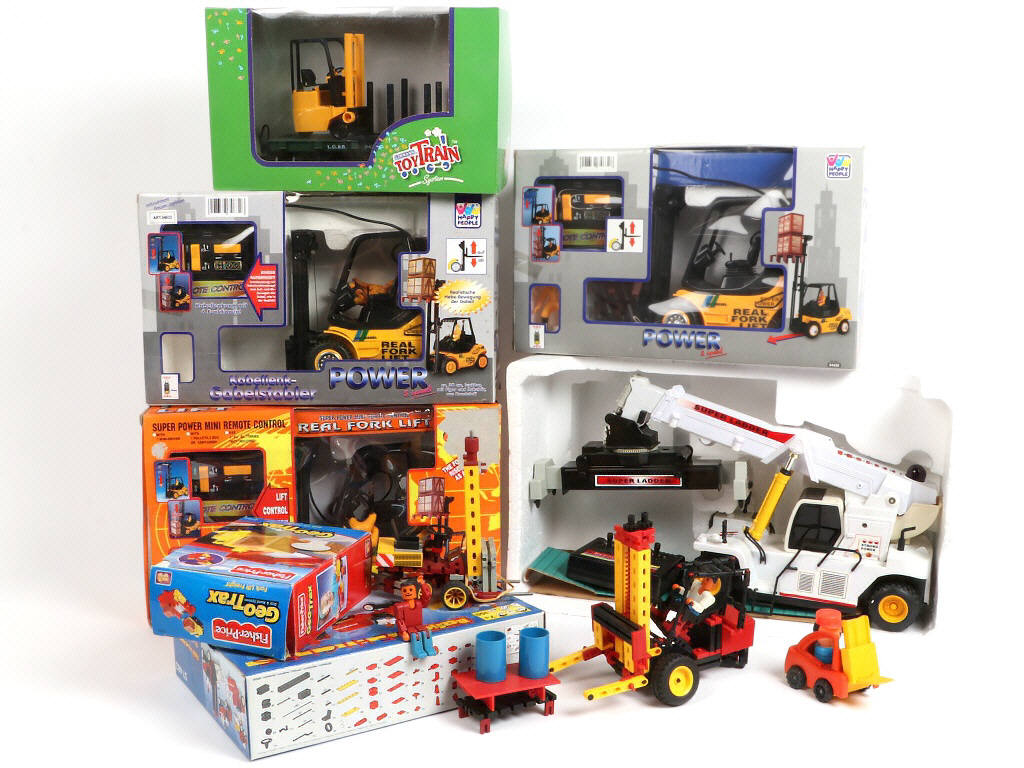 différentes échelles - comprend notamment : chariots élévateurs télécommandés (non testés) - avec manques & parties cassées