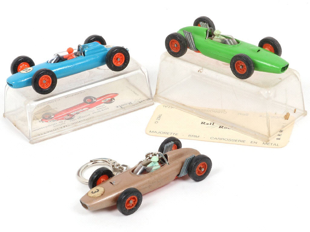 série 'RAIL ROUTE' - les boîtes sont en état 'c' (un exemplaire sans) - la BRM verte est repeinte - un modèle faisant office de porte-clé (un autocollant manquant)