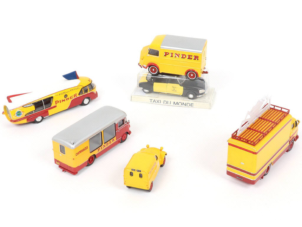 EDITIONS ALTAYA (FRANCE) Ensemble de 5 véhicules du cirque 'PINDER' jaune & rouge