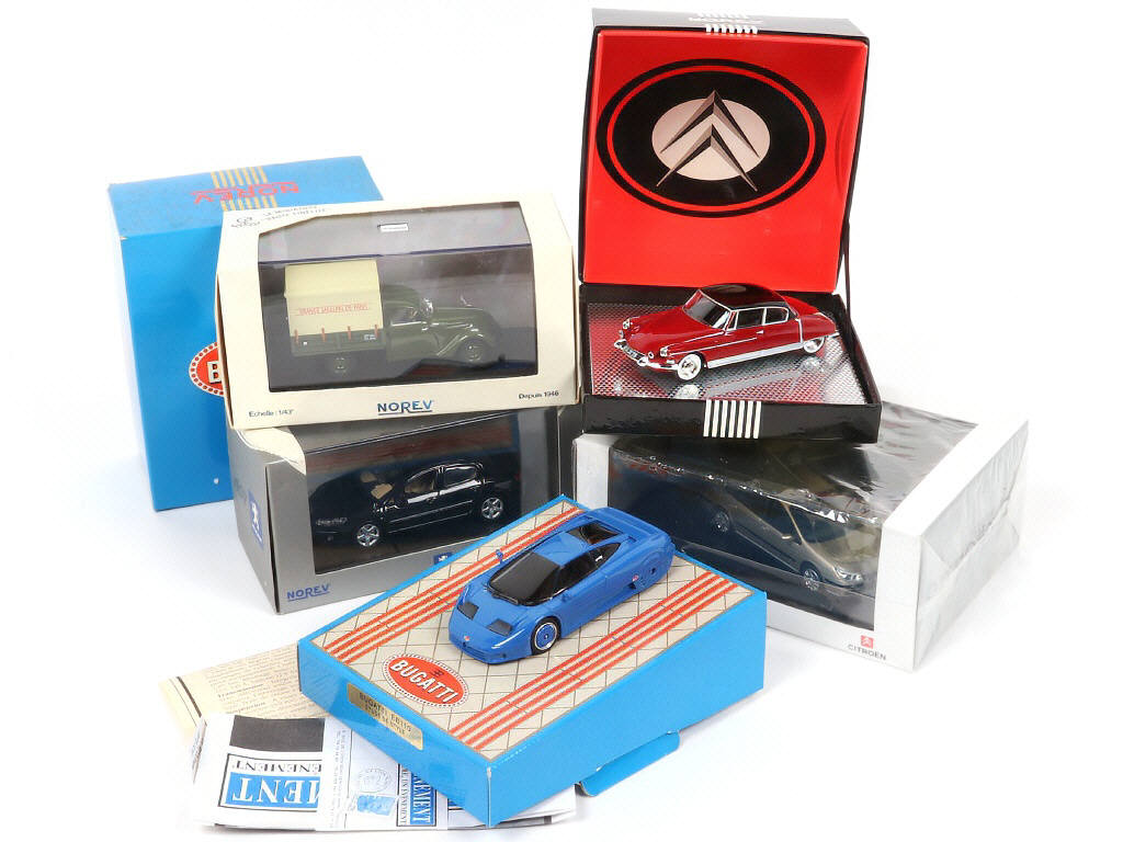 miniatures reproduisant les modèles : PEUGEOT, CITROËN & BUGATTI - manque un rétroviseur