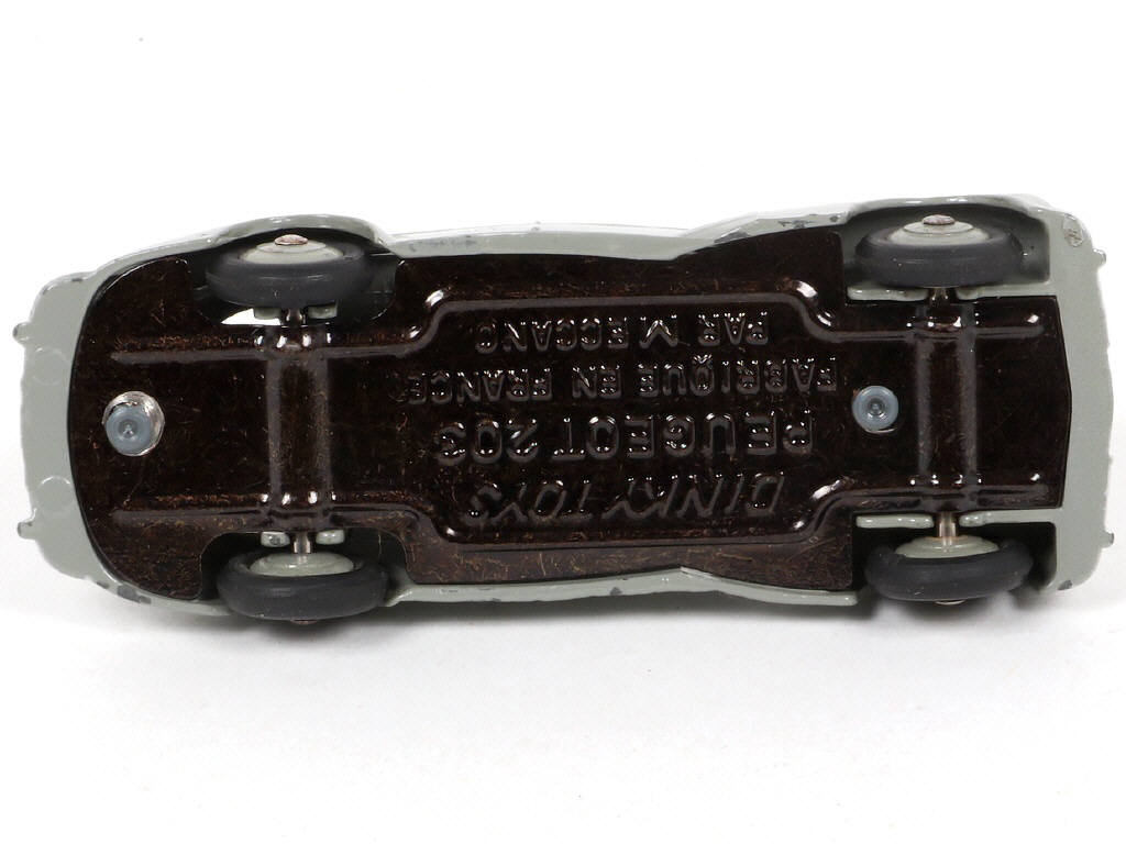 DINKY TOYS (FRANCE) 24R PEUGEOT 203 Petite lunette arrière (version avec intérieur de toit quadrillé & ailes lisses) gris moyen, jantes identiques