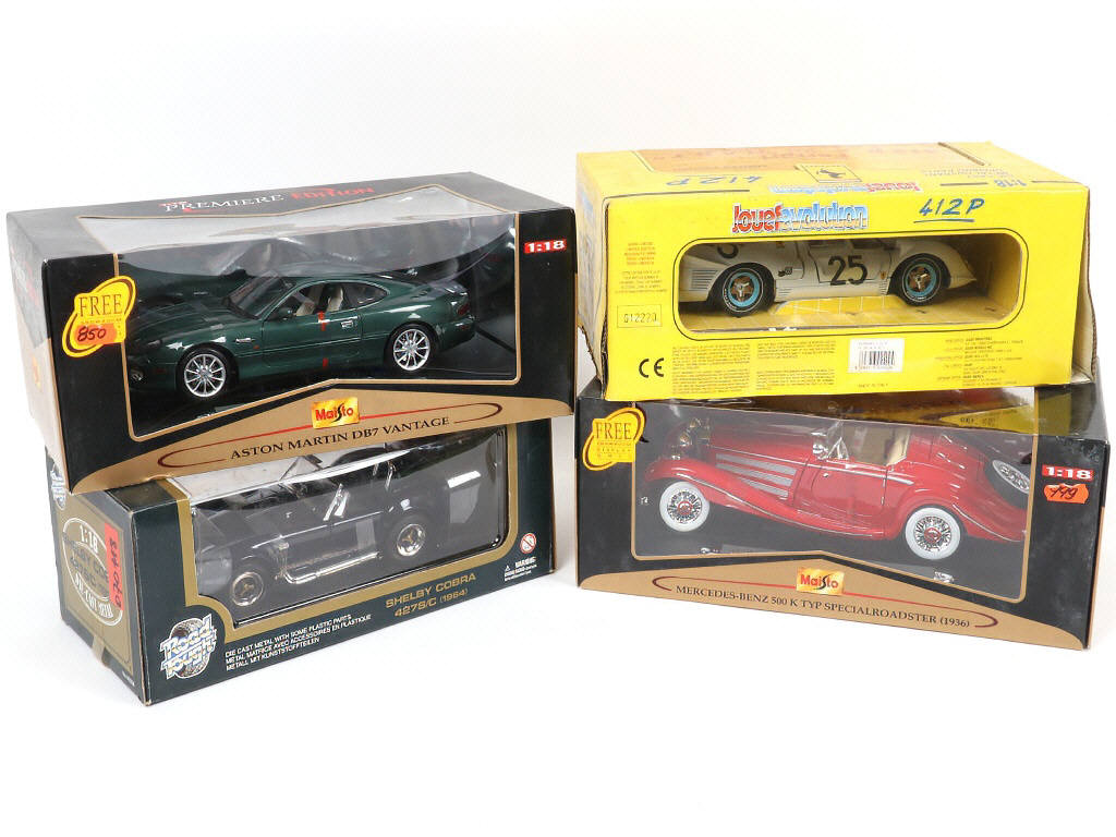 échelle : 1/18ème - on y retrouve notamment les marques : MAISTO & JOUEF EVOLUTION - boîtes plus ou moins salies (une en état 'c')