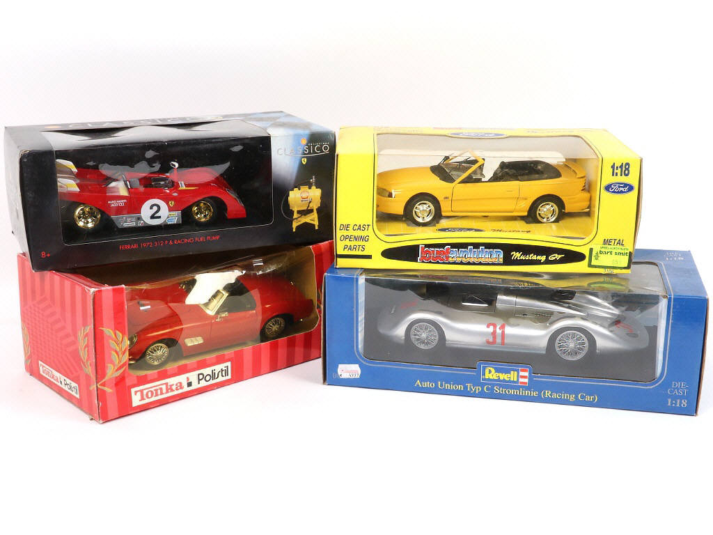 échelle : 1/18ème - on y retrouve notamment les marques : JOUEF EVOLUTION (pare-brise à repositionner) & REVELL - boîtes plus ou moins encrassées (un blister déchiré)