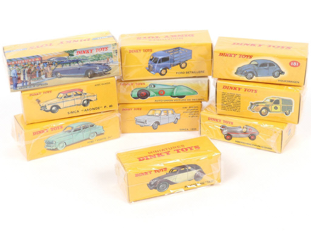 rééditions DINKY TOYS - certaines boîtes en partie décolorées (sous films plastiques vraisemblablement jamais ouvertes, état général supposé)