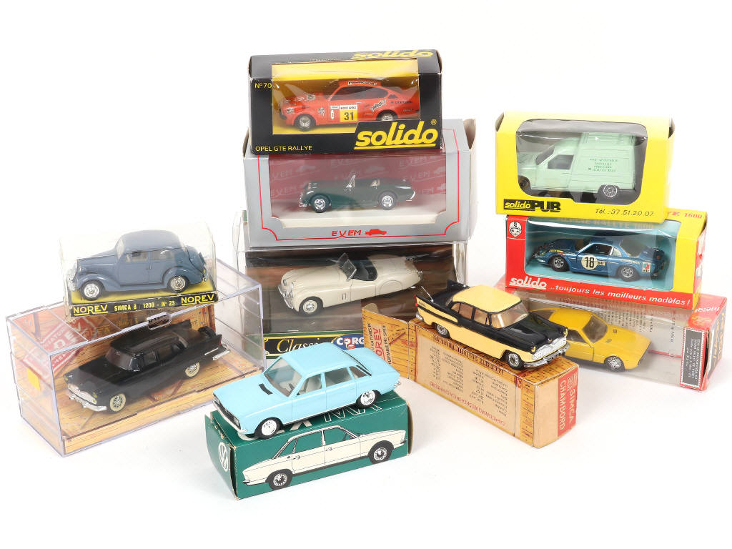 les boîtes sont en état de 'a' à 'c' - on y retrouve notamment les marques : NOREV, EXEM & SOLIDO - 4 exemplaires avec détails ajoutés (dont un en état 'C')