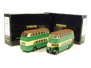 TRUX (AUSTRALIE) Ensemble de 2 ALBION Autobus à impérial 1947 vert, crème & marron