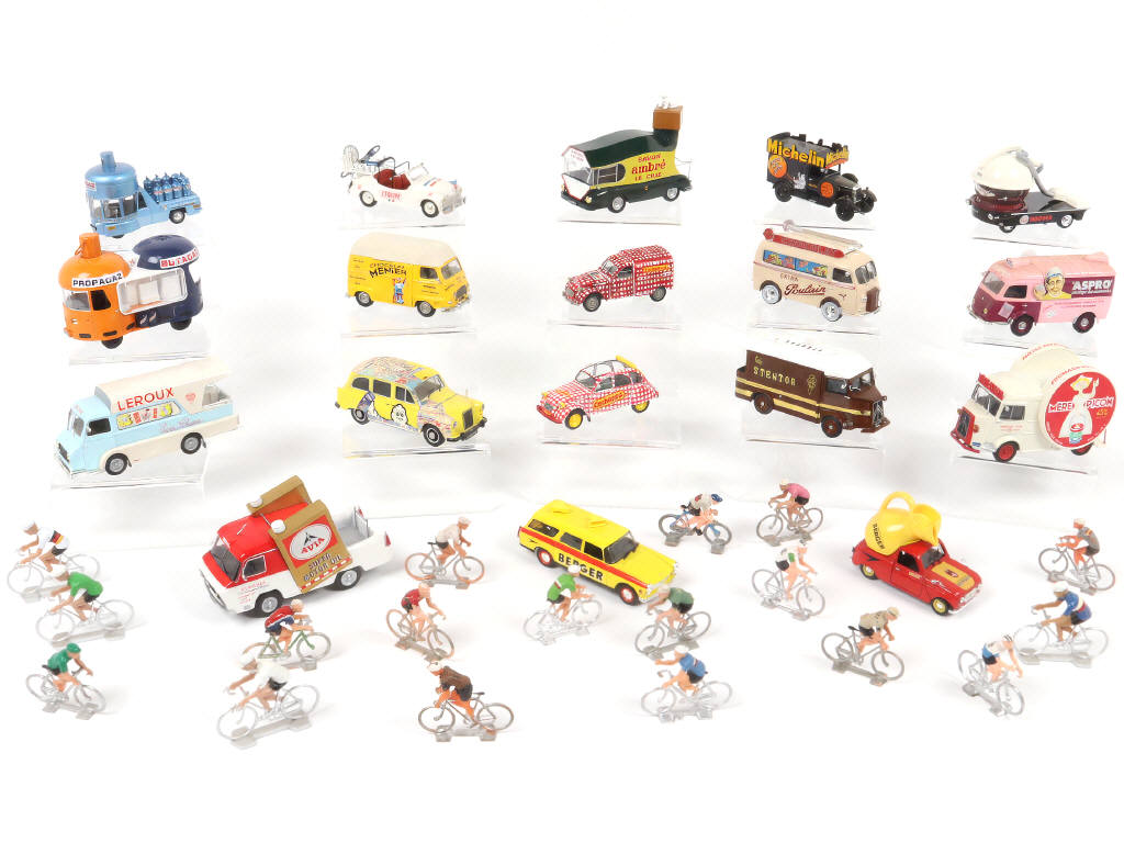 DIVERS Ensemble de 18 véhicules publicitaires & différents cyclistes