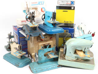 non testé - comprend principalement des machines à coudre - avec manques, parties cassées & oxydées - les boîtes présentées sont en état 'c' - on y retrouve notamment la marque MARCHESINI