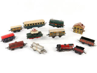 DIVERS 'Ecartement O' Ensemble de 11 matériels ferroviaires & une gare
