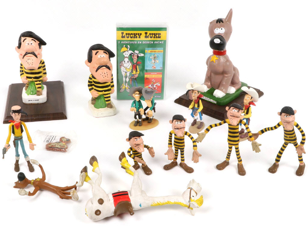 DARGAUD PARIS (FRANCE) Ensemble de 14 figurines & une VHS sur le thème 'LUCKY LUKE'